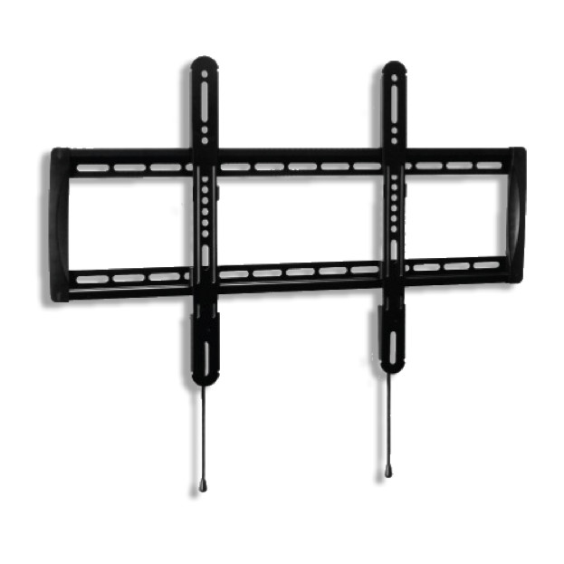 Фиксированный – самый простой настенный кронштейн для телевизора. Он жестко закрепляет мультимедийное средство на стене. Благодаря несложной конструкции он обладает низкой ценой, может использоваться с любым видом техники. Важным его преимуществом является высокая надежность, которая обусловлена минимальным количеством составных элементов.